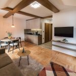 APARTMAN 2 – Dnevni boravak sa kuhinjom, spavaća soba sa francuskim ležajem i kupatilo.