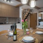 APARTMAN 5 – Dnevni boravak sa kuhinjom, spavaća soba sa francuskim ležajem i dva krevata na galeriji na spratu. Dve terase i kupatilo.