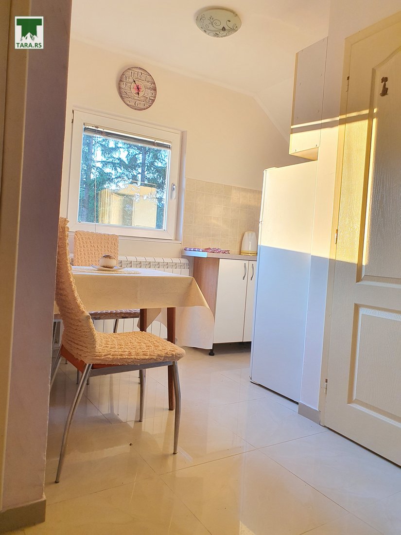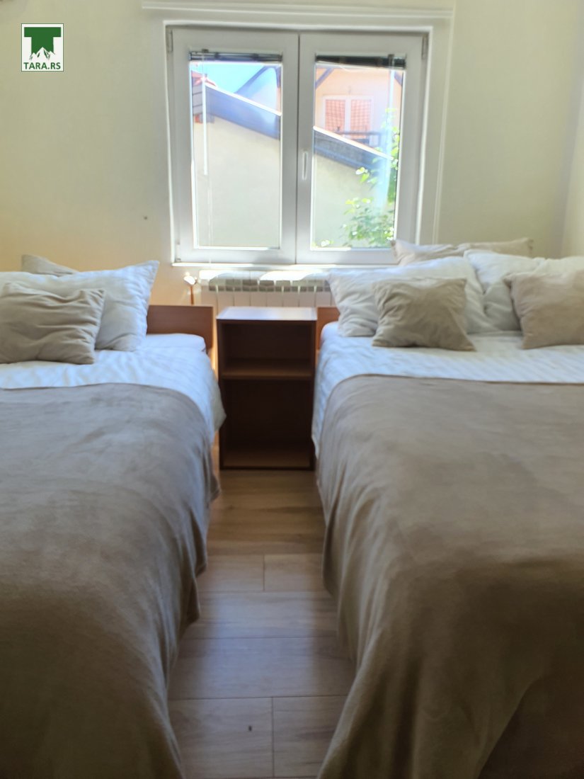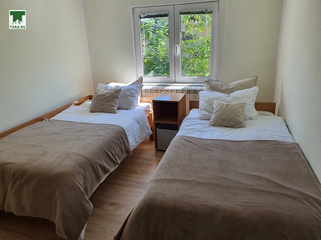 Lepo uređeno dvorište, tri apartmana sa velikim terasama kao i lepa okolina učiniće da provedete nezaboravan odmor na planini Tari. U objektu je bežićni internet. U blizini naših apartmana se nalazi hotel „Beli bor“, Ergele konja, Manastirski stanovi i crkva, vidikovac Crnjeskovo sa koga se pruža lep pogled na Bajinu Baštu i manastir Raču, ski staze sa školom skijanja, a na 2 kilometra udaljenosti je hotel «Omorika». Od nas se mogu realizovati i izleti do Mitrovca, jezera u Zaovinama, do Mokre Gore, obići grad Mećavnik, Zlatibor i grad Bajinu Baštu ili se okupati na Perućačkom jezeru.