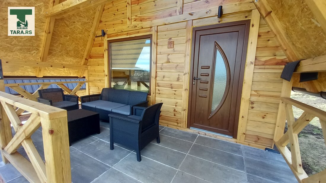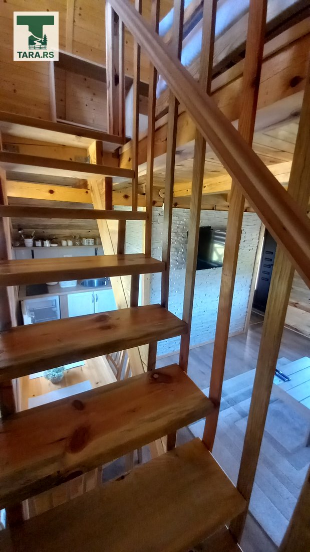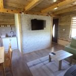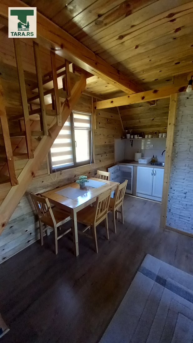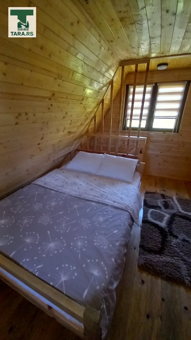 Svaka brvnara je za do 4 osobe i ima komplet opremljenu kuhinju, dnevni boravak i spavaću sobu sa