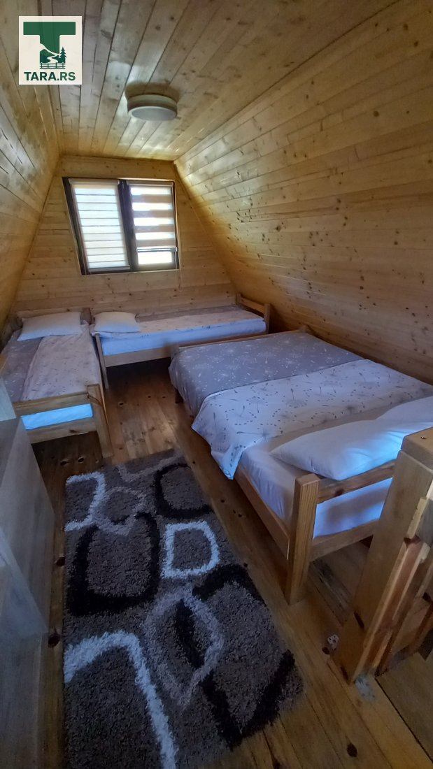 1 bračnim + 2 singl kreveta. Grejanje je na peć na pelet, a gostima su dostupni Wi-Fi internet