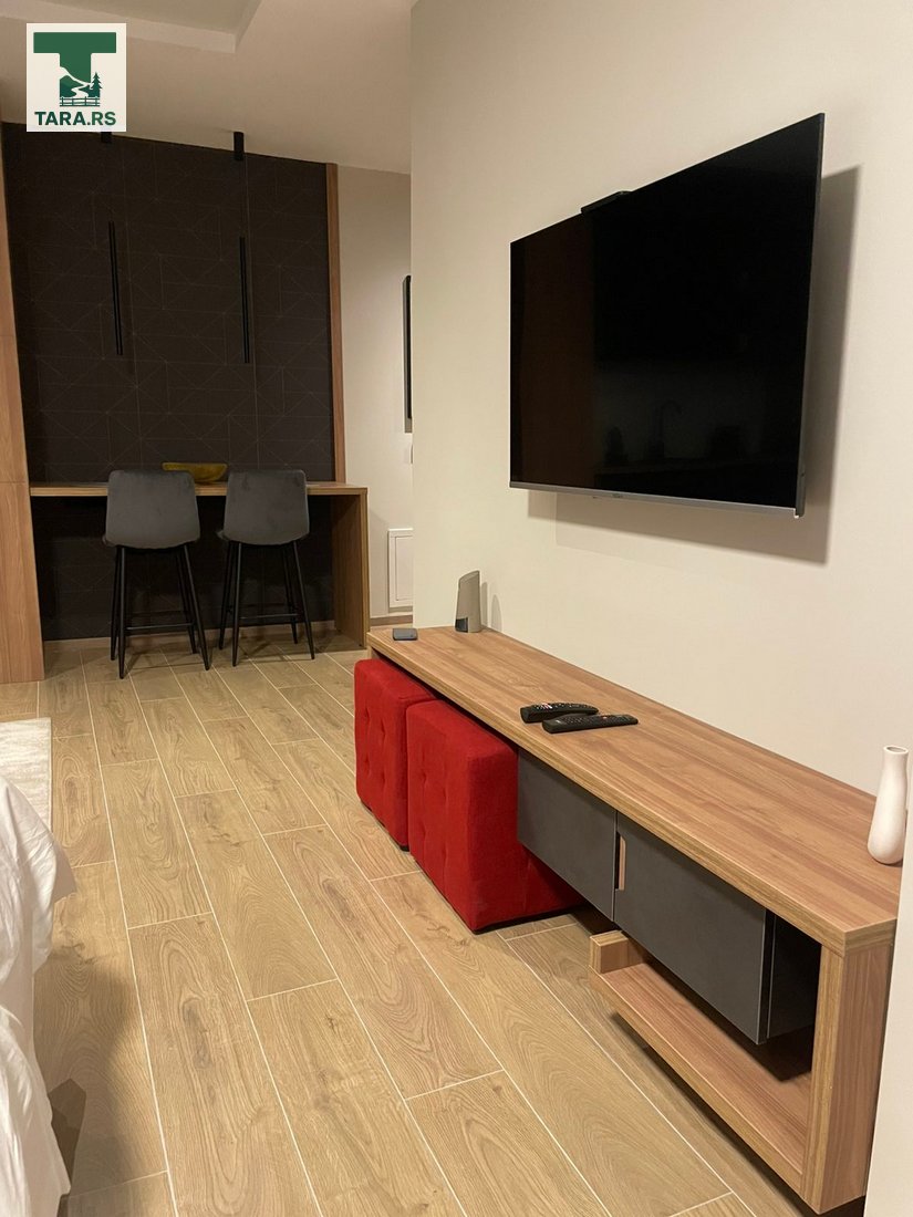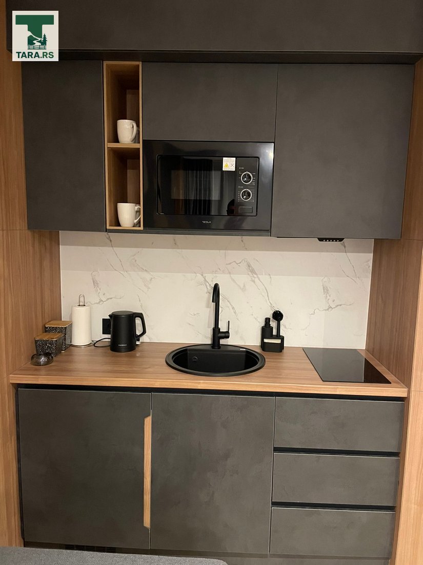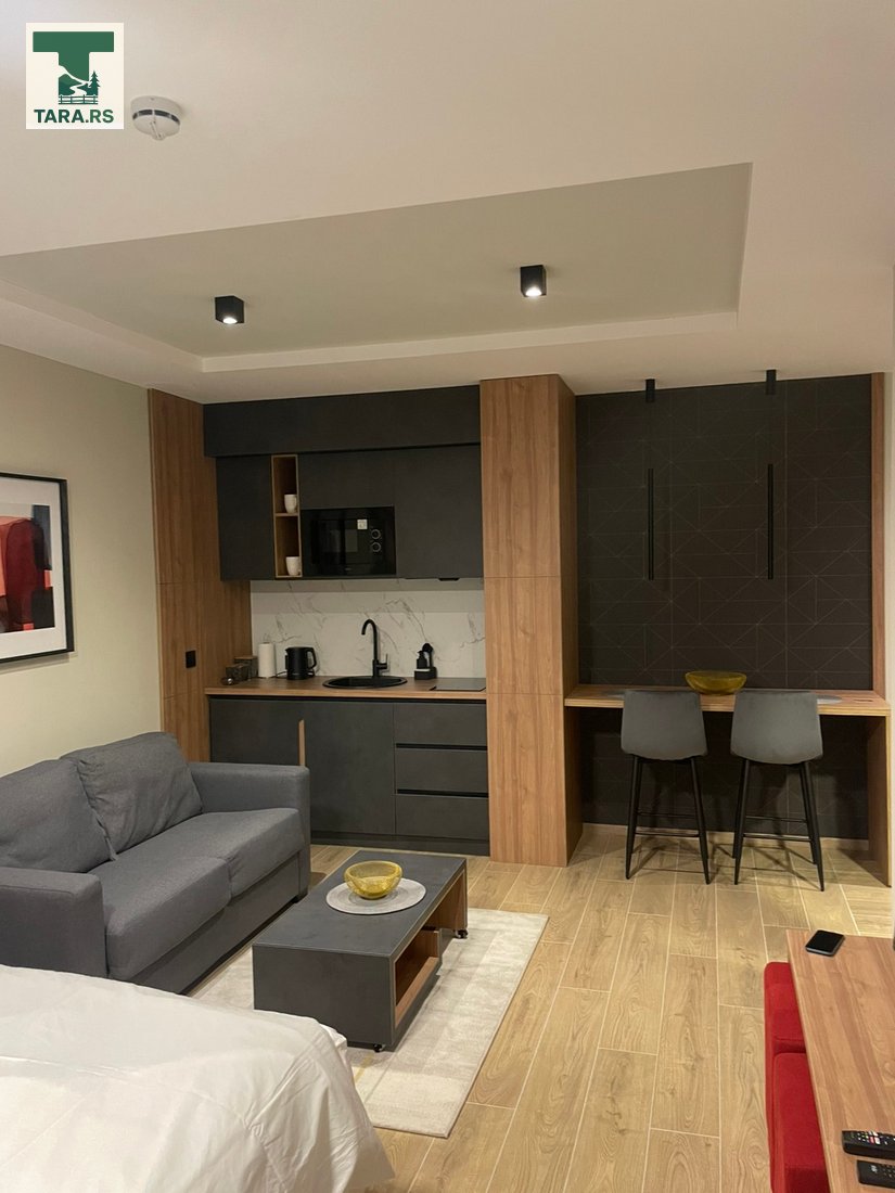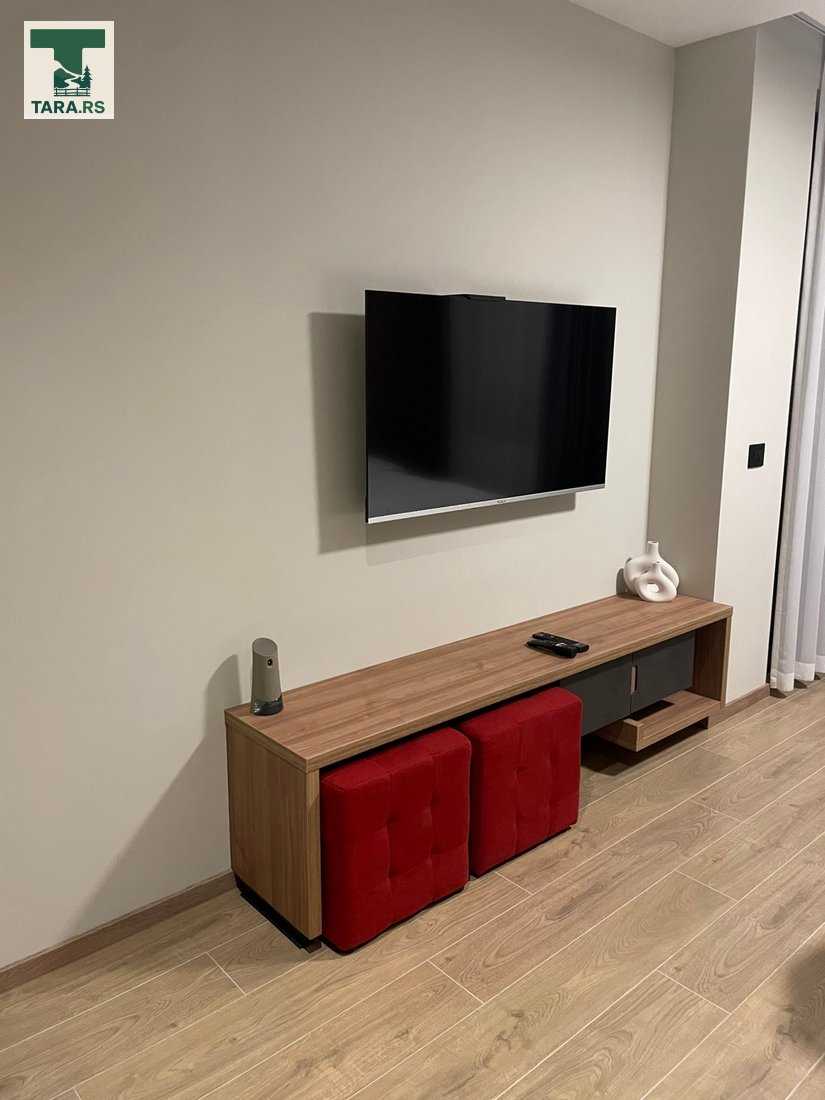 Apartman pruža sve što je potrebno za prijatan i bezbrižan boravak: prostran dnevni boravak sa foteljom na razvlačenje, udoban bračni krevet, potpuno opremljenu kuhinju (frižider, ploča za kuvanje, rerna, posuđe i pribor), moderno kupatilo sa tuš kabinom, podno grejanje sa termostatom za regulaciju temperature, terasu i parking za goste.